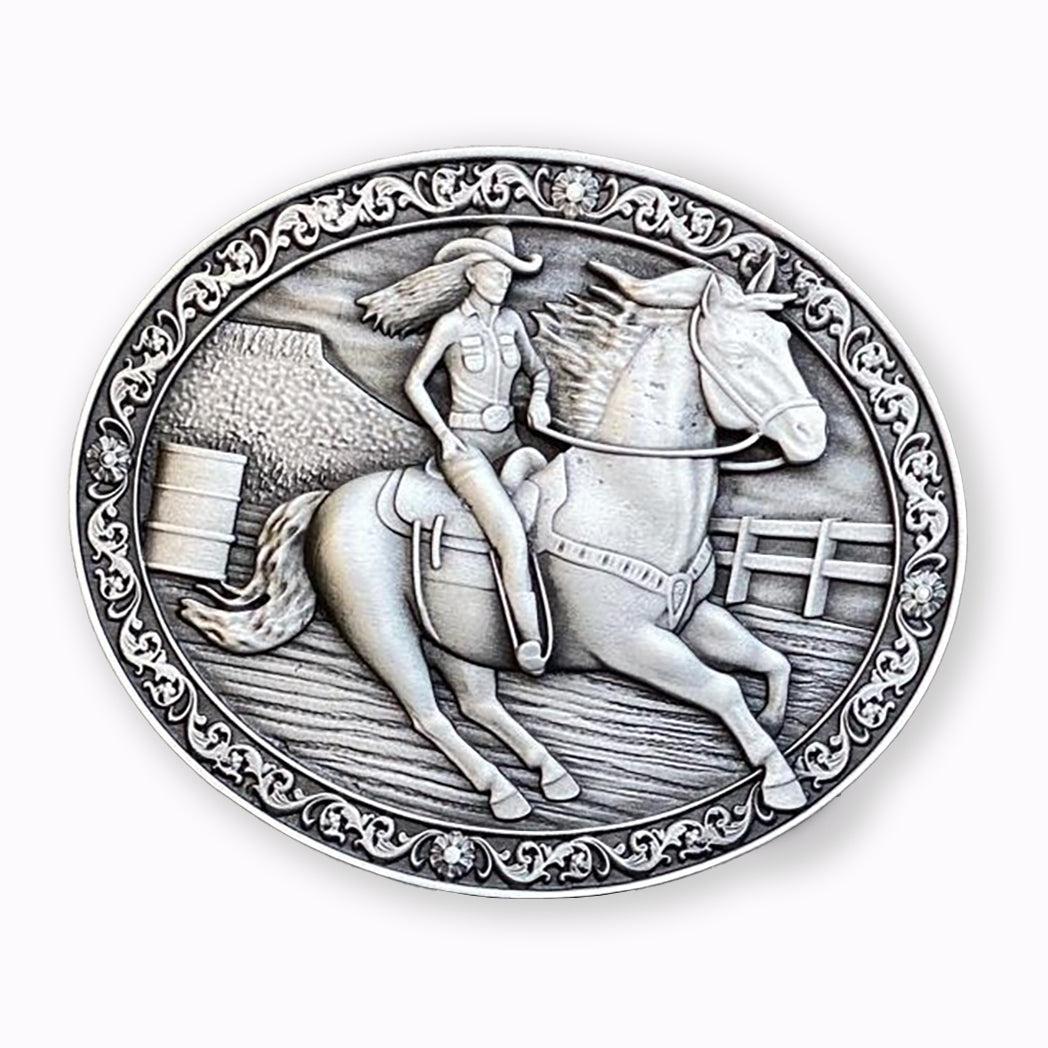 Capture the energy of the rodeo with the Jessica’s Pride belt buckle. Thouhgtfully handcrafted in our Perth workshop from solid pewter, it features a finely engraved barrel race scene that’s rich in Western spirit. Built to last, this 90 mm × 68 mm buckle comes with a corrosion-resistant 304‑grade stainless steel clip and is covered by a lifetime guarantee on all pewter elements—so it’s as tough as it is stylish. Weighing around 145 g, it sits just right for everyday wear or making a statement at your next event. Arriving ready to gift in a plush velvet pouch, it’s a standout piece that brings craftsmanship and Western heritage together in a meaningful, wearable way.
